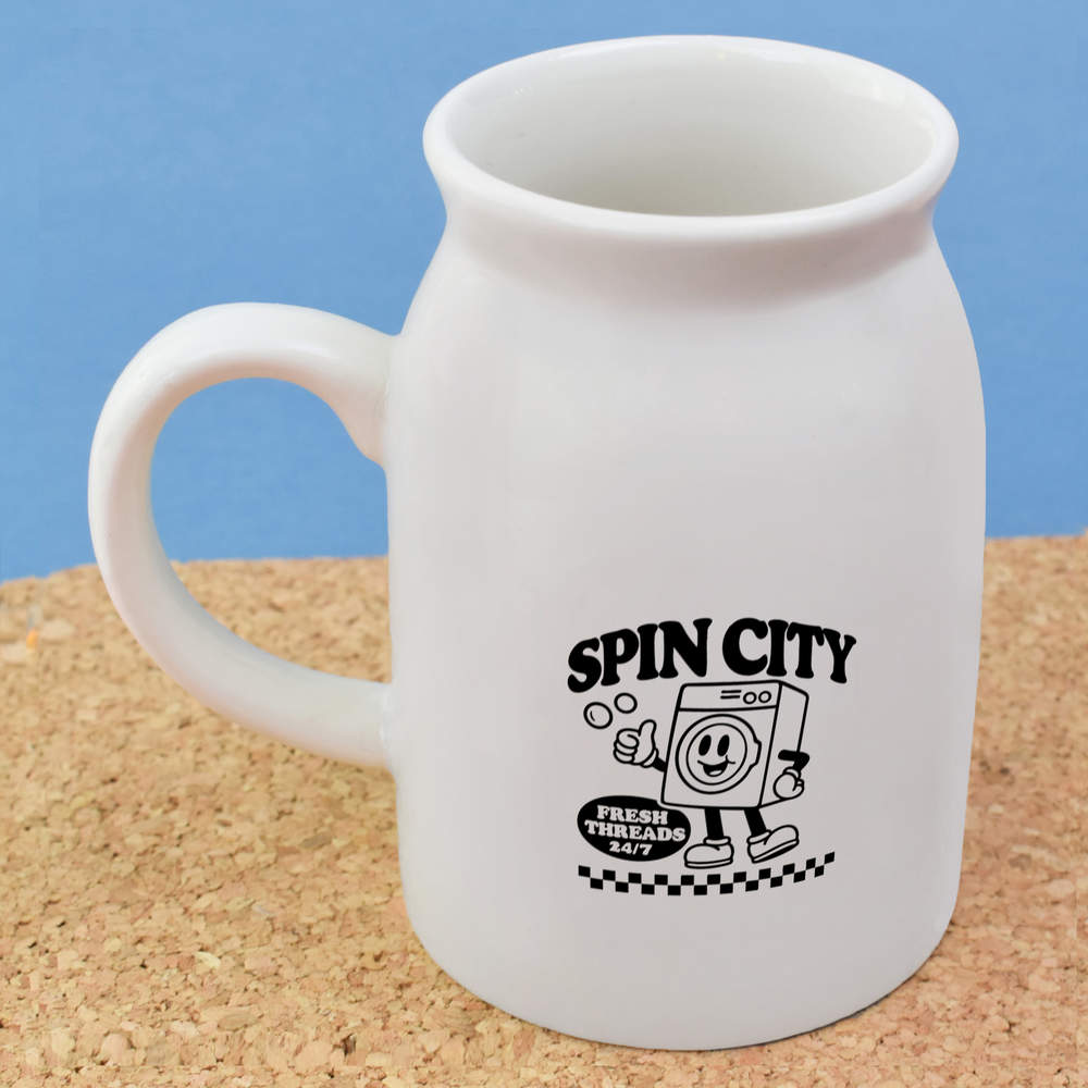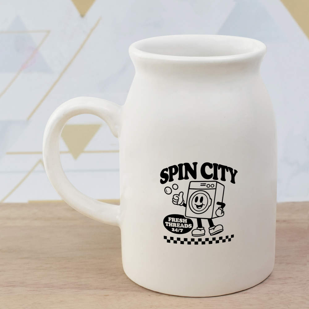 Elevate your kitchen collection with our stylish 10.5oz (300ml) milk jug. Showcasing a unique design printed prominently on both sides, this jug is not only a functional addition to your daily rituals but also a delightful visual treat.
