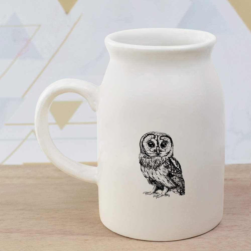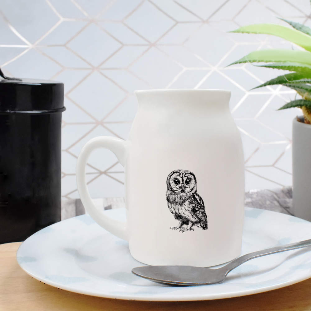 Elevate your kitchen collection with our stylish 10.5oz (300ml) milk jug. Showcasing a unique design printed prominently on both sides, this jug is not only a functional addition to your daily rituals but also a delightful visual treat.