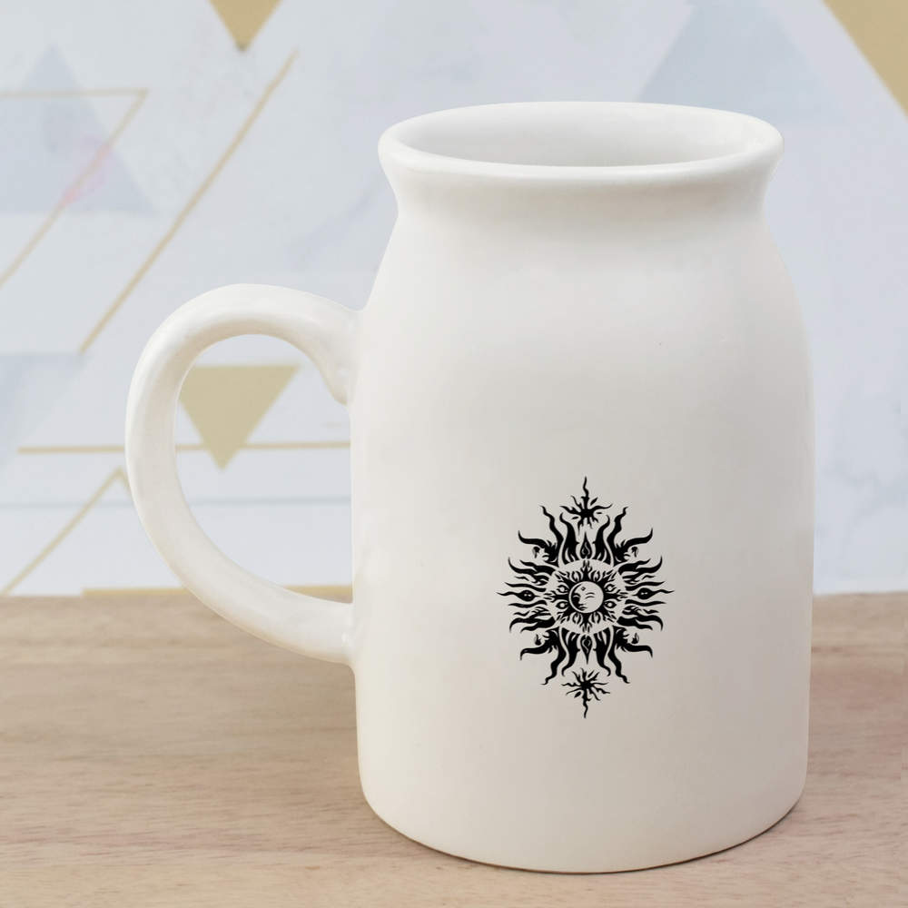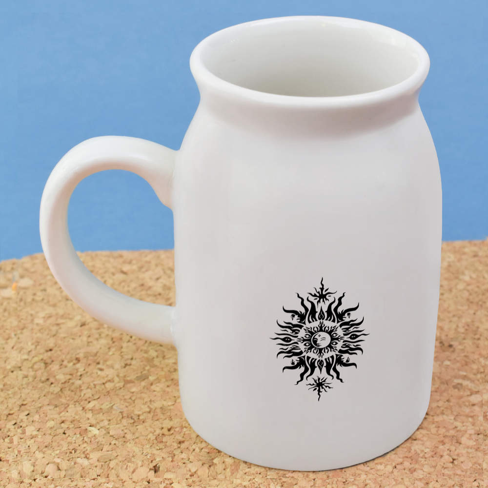 Elevate your kitchen collection with our stylish 10.5oz (300ml) milk jug. Showcasing a unique design printed prominently on both sides, this jug is not only a functional addition to your daily rituals but also a delightful visual treat.
