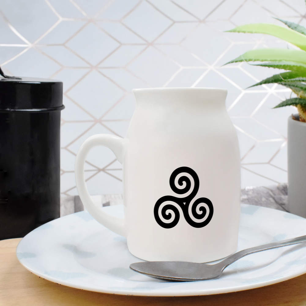 Elevate your kitchen collection with our stylish 10.5oz (300ml) milk jug. Showcasing a unique design printed prominently on both sides, this jug is not only a functional addition to your daily rituals but also a delightful visual treat.