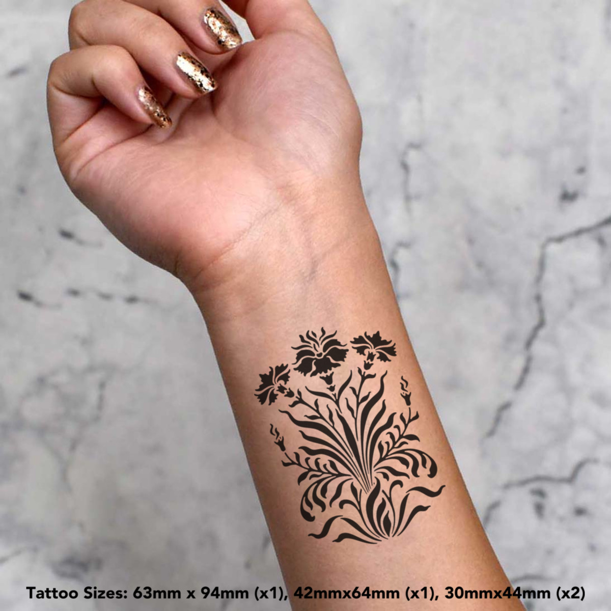 4 x 'Art Nouveau Carnations' Temporary Tattoos - Water Resistant, Skin-Safe, Non-Toxic Transfers, Mixed Sizes (TO00076034)