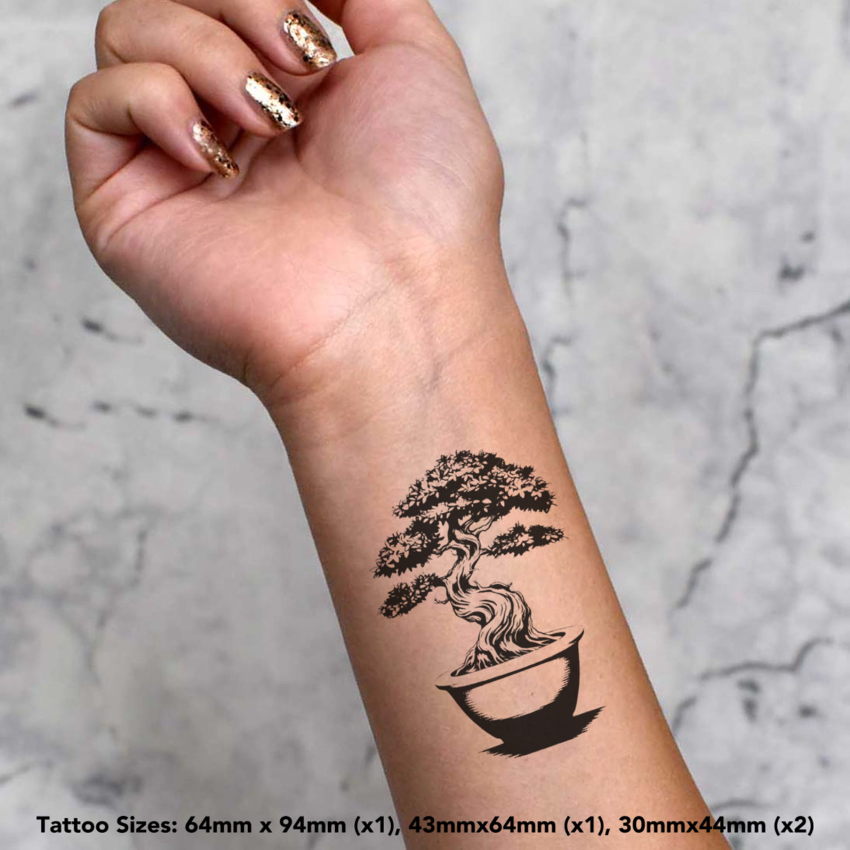 4 x 'Bonsai Tree in Pot' Temporary Tattoos - Water Resistant, Skin-Safe, Non-Toxic Transfers, Mixed Sizes (TO00085838)