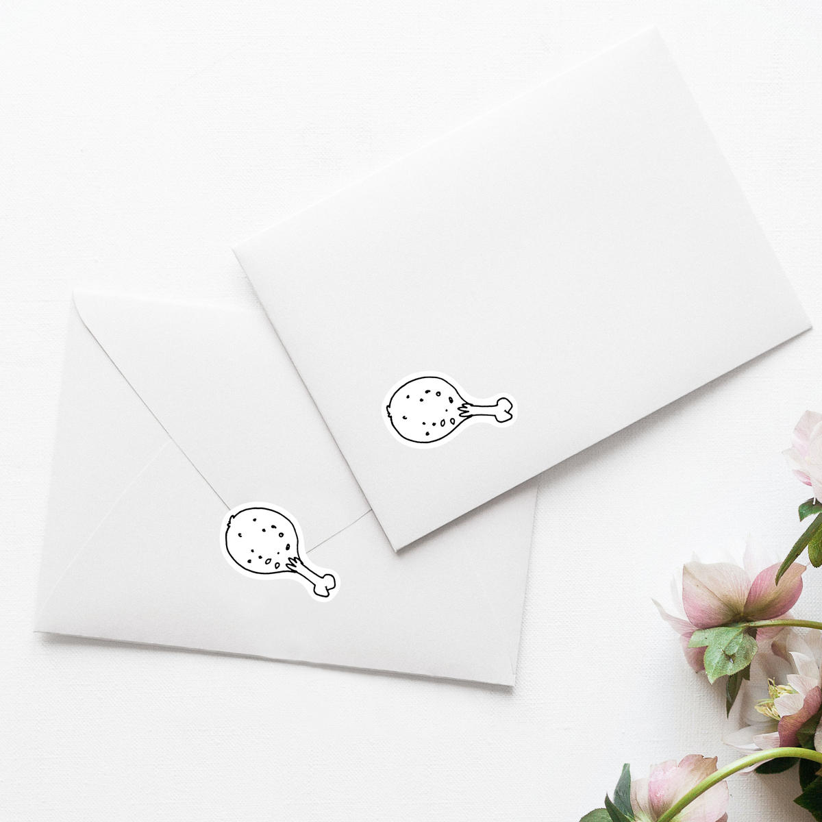 4 x 'Chicken Leg' White Premium Vinyl Decal Stickers – Waterproof, Durable & Easy to Apply - For Car Bumpers, Windows, Bins & More - Small (50mm) (DW00025601)