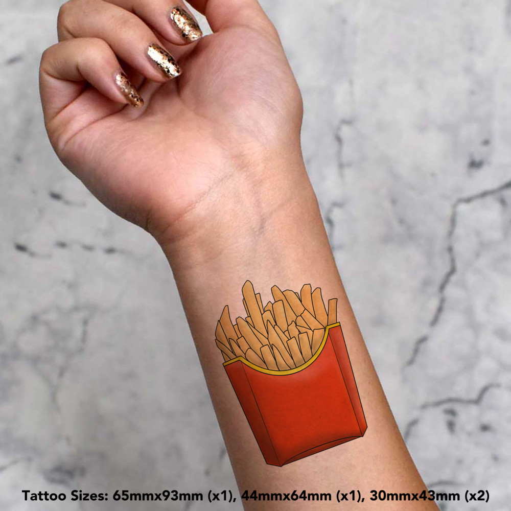 4 x 'Fast Food Fries' Temporary Tattoos - Water Resistant, Skin-Safe, Non-Toxic Transfers, Mixed Sizes (TO00049911)