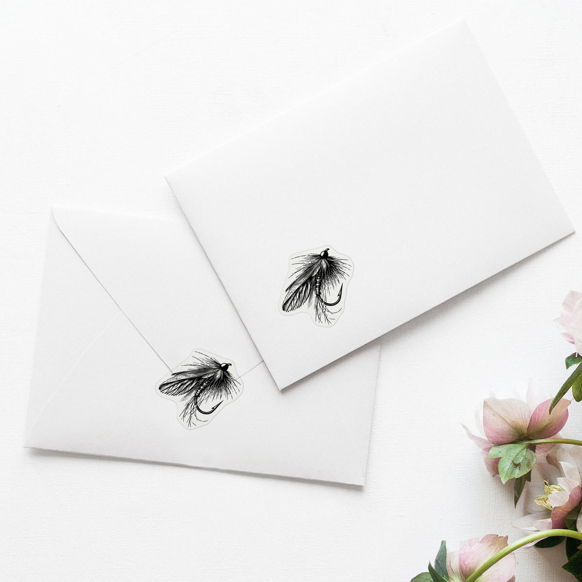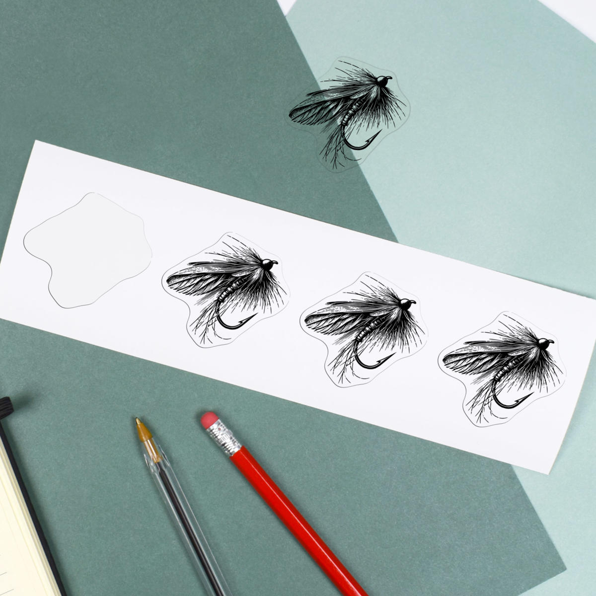 4 x 'Fishing Fly' Clear Premium Vinyl Decal Stickers – Waterproof, Durable & Easy to Apply - For Car Bumpers, Windows, Bins & More - Small (50mm) (DC00131272)