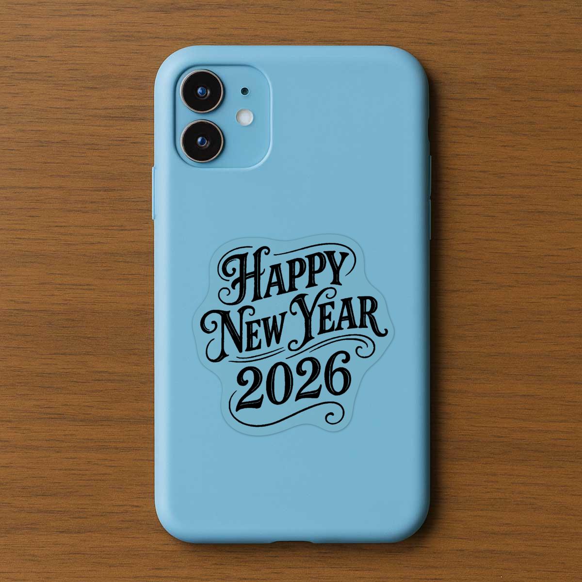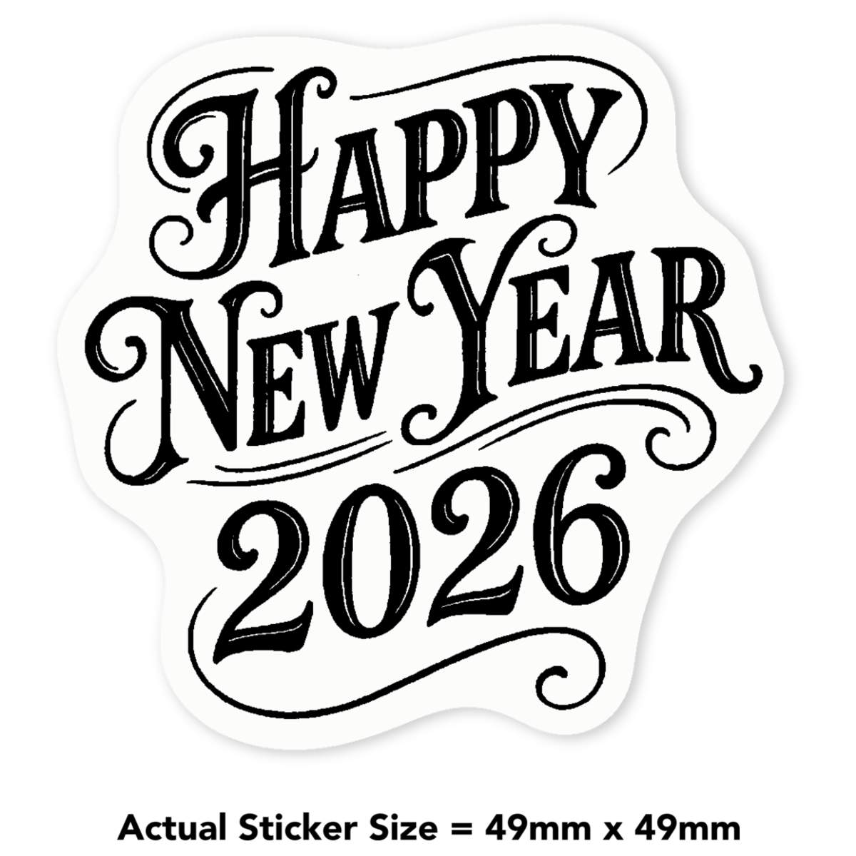 4 x 'Happy New Year 2026' Clear Premium Vinyl Decal Stickers – Waterproof, Durable & Easy to Apply - For Car Bumpers, Windows, Bins & More - Small (50mm) (DC00164741)