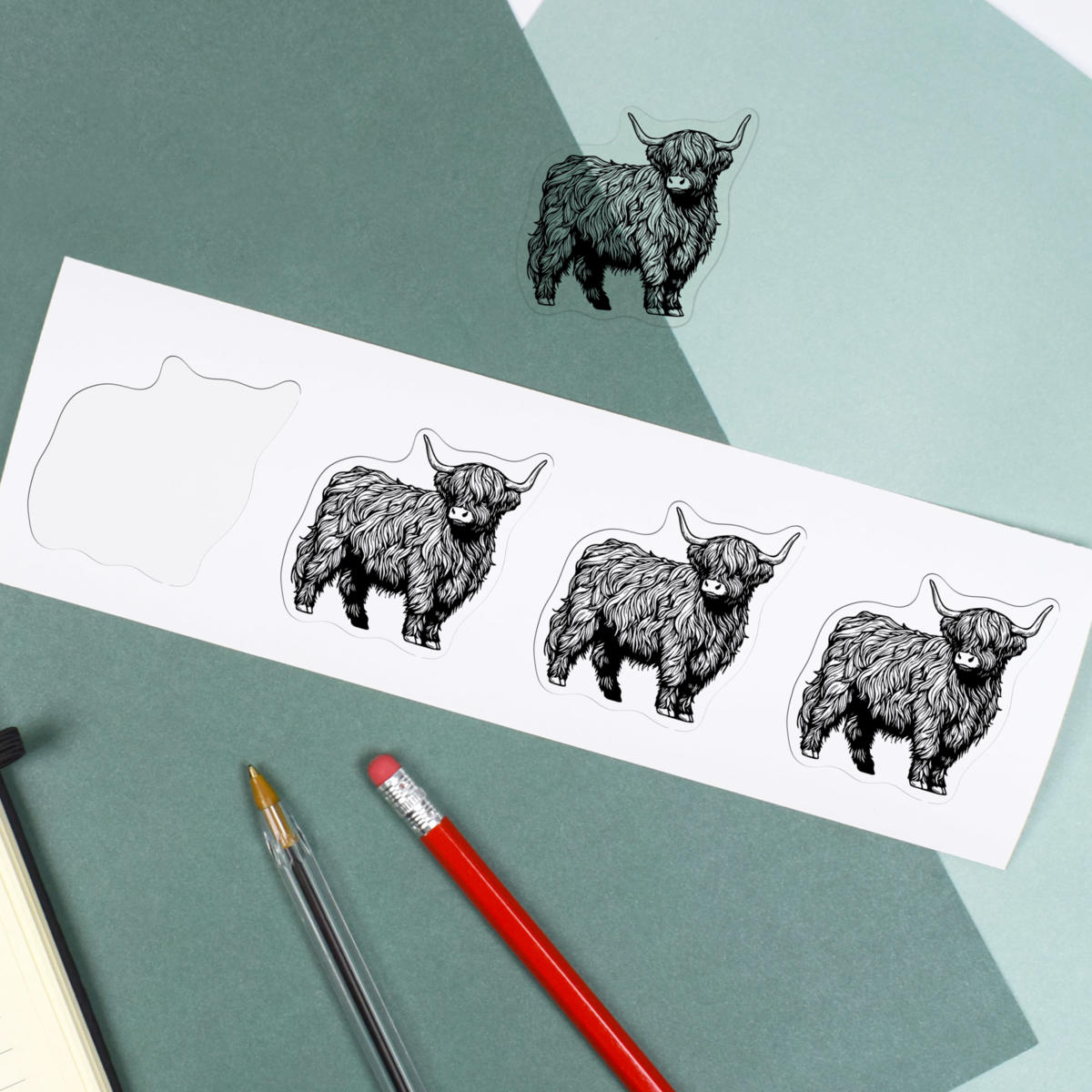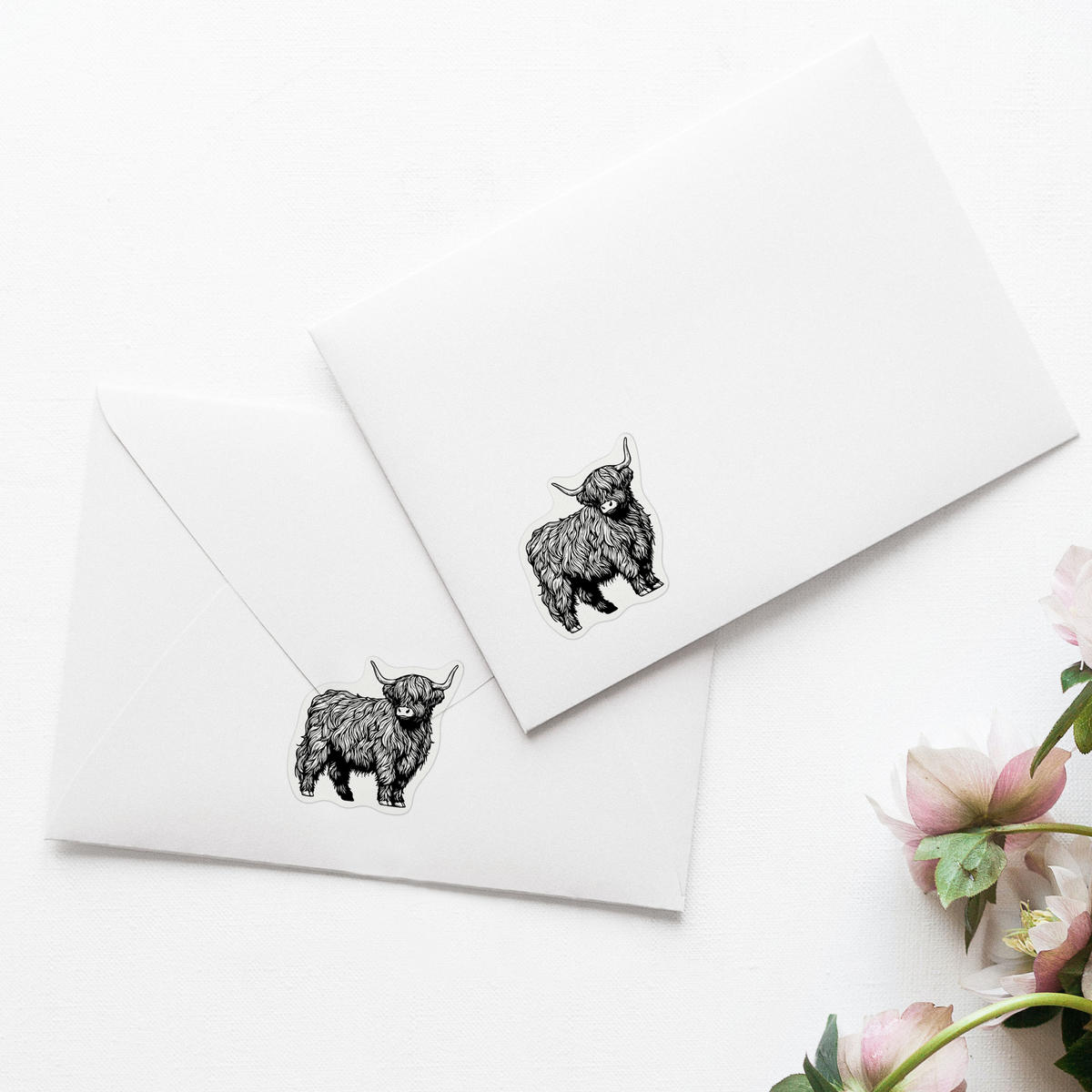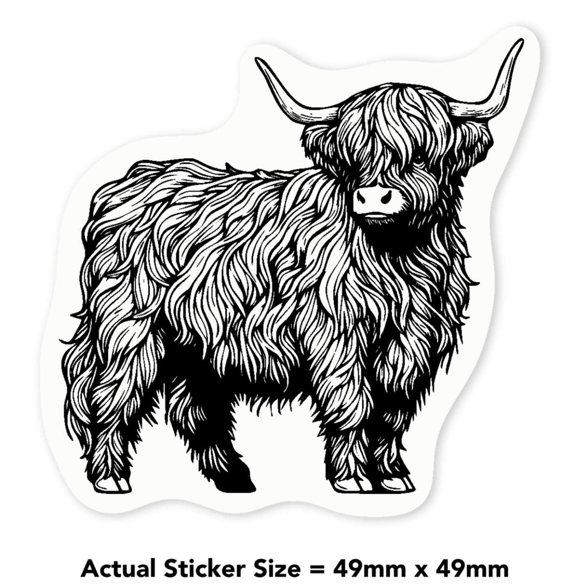 4 x 'Highland Cow Standing' Clear Premium Vinyl Decal Stickers – Waterproof, Durable & Easy to Apply - For Car Bumpers, Windows, Bins & More - Small (50mm) (DC00132120)