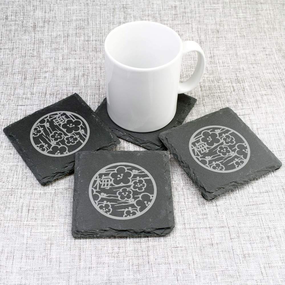 - Each coaster is engraved with a unique design