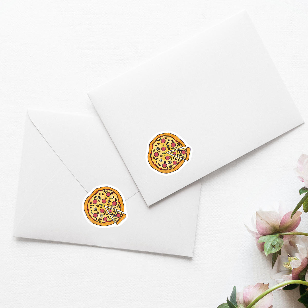 4 x 'Pizza' White Premium Vinyl Decal Stickers – Waterproof, Durable & Easy to Apply - For Car Bumpers, Windows, Bins & More - Small (50mm) (DW00032413)
