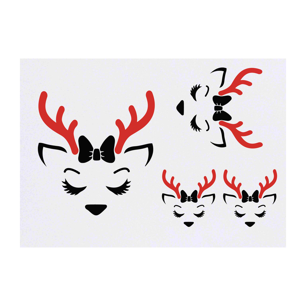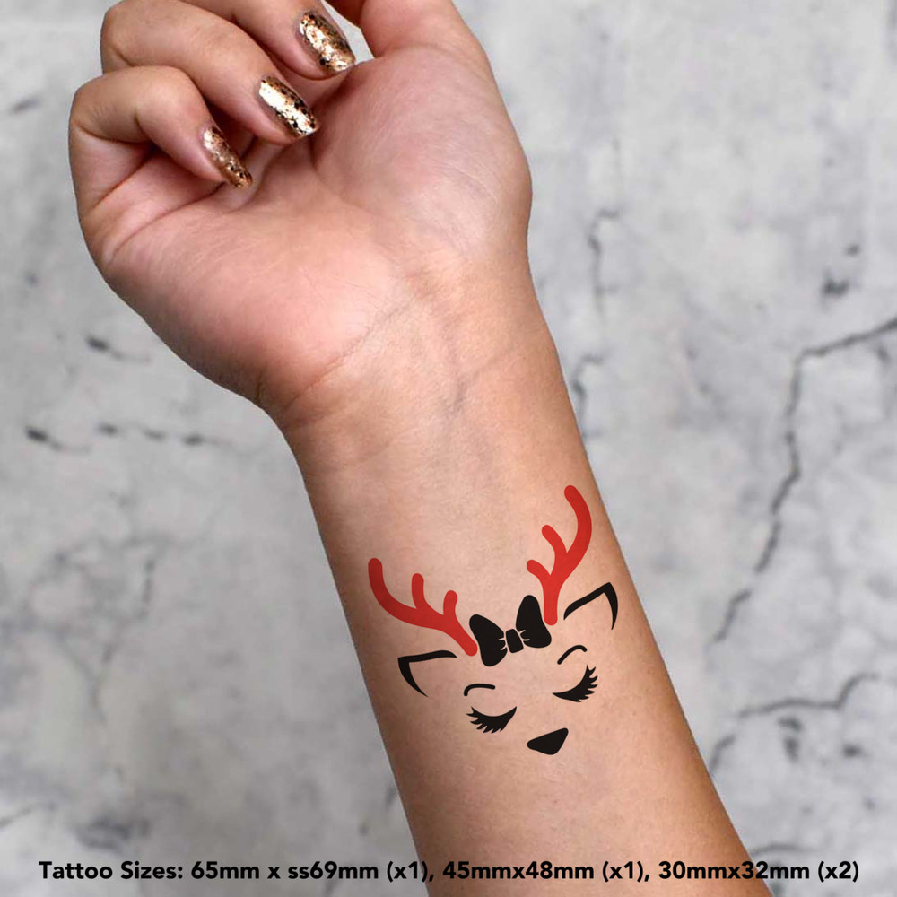 4 x 'Reindeer Cute Face' Temporary Tattoos - Water Resistant, Skin-Safe, Non-Toxic Transfers, Mixed Sizes (TO00091374)