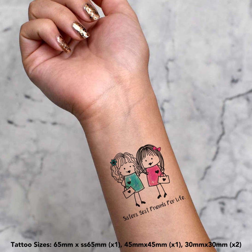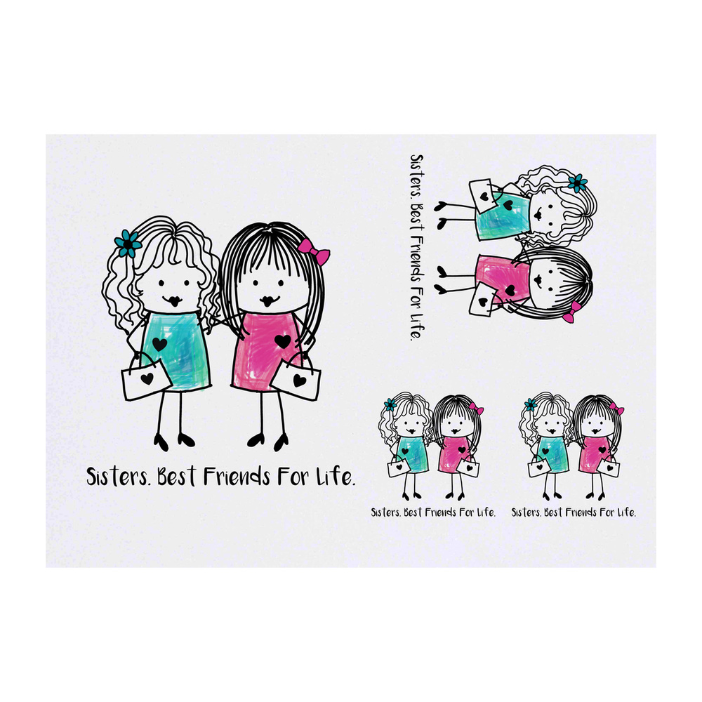 4 x 'Sisters. Best Friends For Life' Temporary Tattoos - Water Resistant, Skin-Safe, Non-Toxic Transfers, Mixed Sizes (TO00075728)