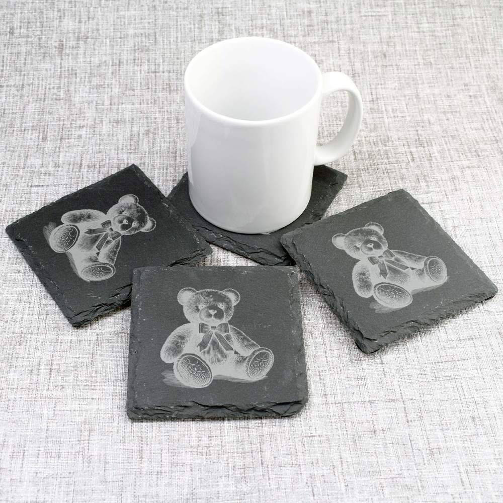 - Each coaster is engraved with a unique design