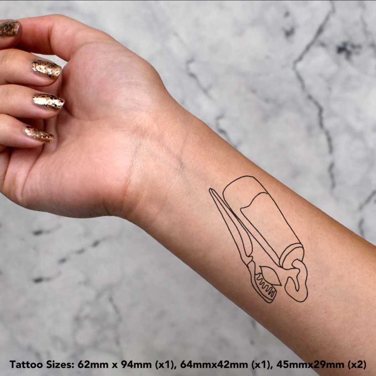 4 x 'Toothpaste & Toothbrush' Temporary Tattoos - Water Resistant, Skin-Safe, Non-Toxic Transfers, Mixed Sizes (TO00015251)