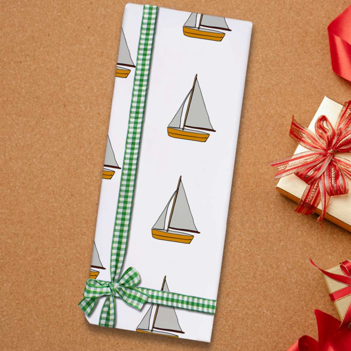 Our single sheets of wrapping paper are folded three times and sent in a protective hardback envelope, so they do arrive with creases in them. Our packs of five sheets are carefully rolled up in a postal tube and therefore will have no creases.
