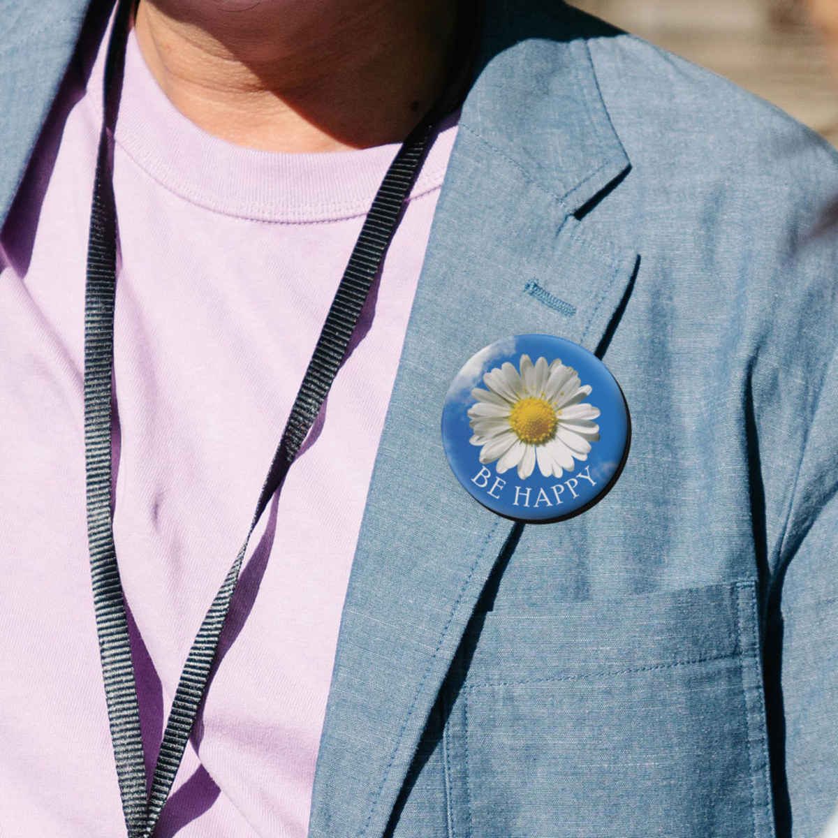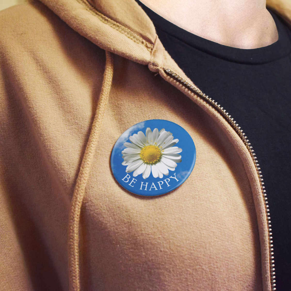 58mm 'Be Happy' Medium Button Pin Badge (BB00128343)