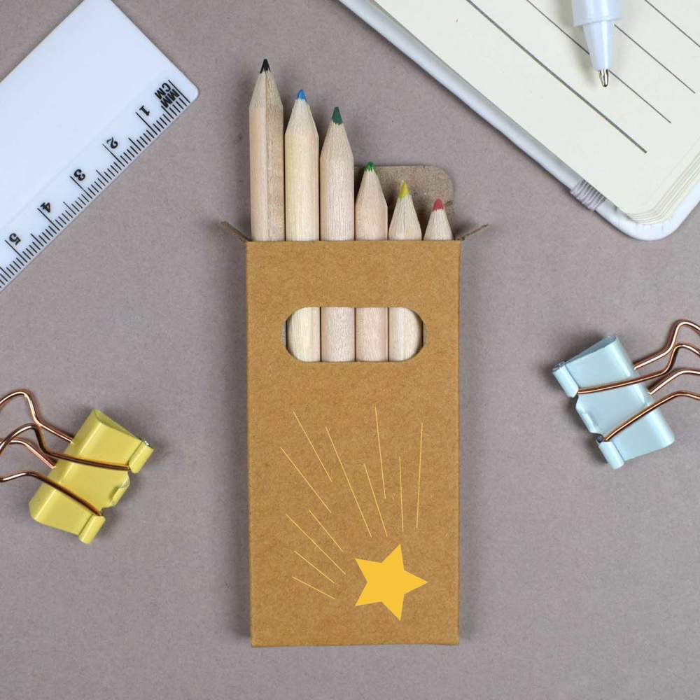 6 x 'A Shooting Star Speeding By' Short 85mm Pencils / Coloured Pencil Set (PE00080712)