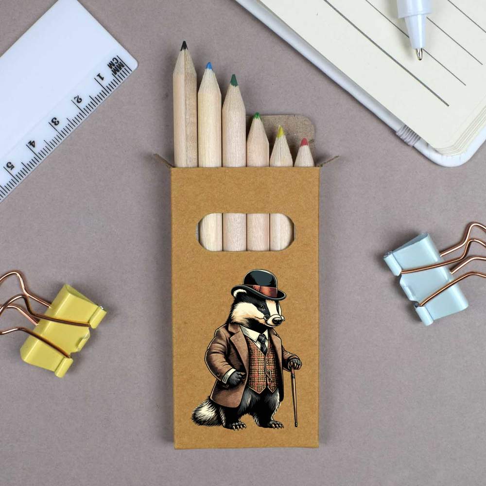 These sets of six mini colouring pencils are ideal for travel or to slip in a bag for those emergency colouring in scenarios that we all face. There are six half size colouring pencils in each box (colours may vary) and the storage box they come in features one of our unique designs.