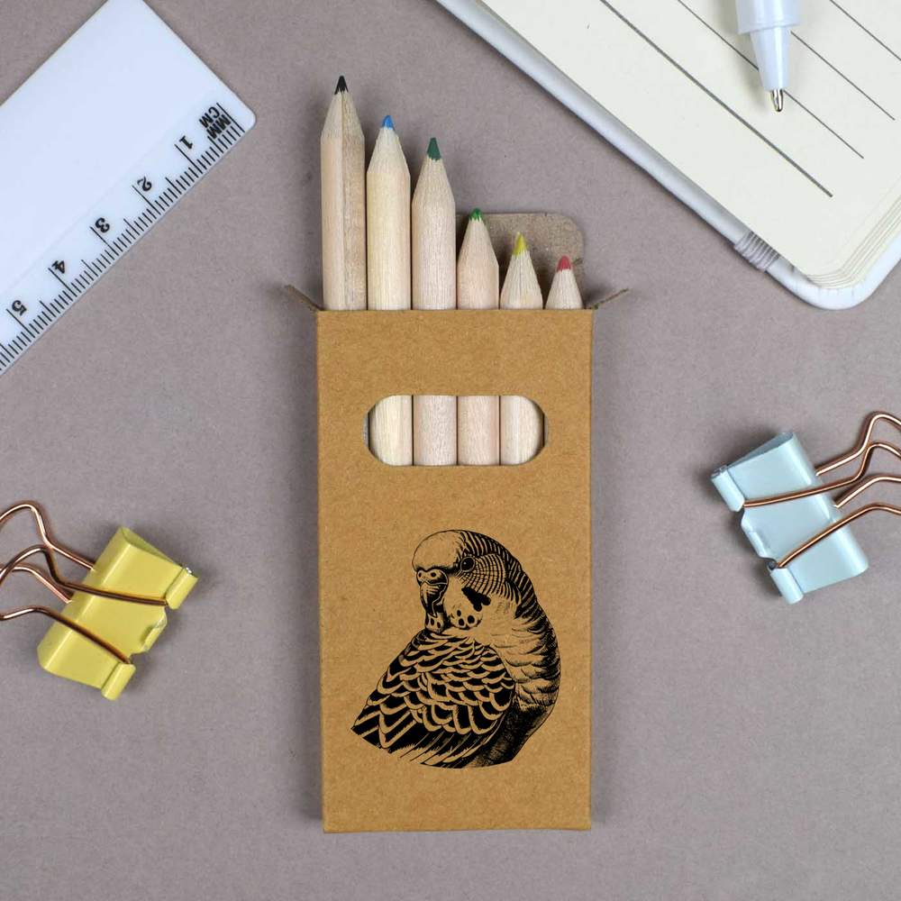 6 x 'Budgie Portrait' Short 85mm Pencils / Coloured Pencil Set (PE00084184)