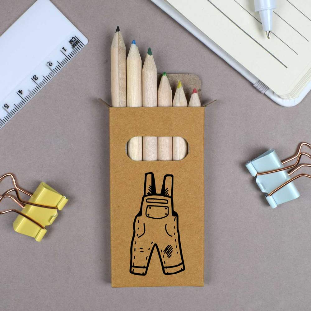 6 x 'Dungarees' Short 85mm Pencils / Coloured Pencil Set (PE00014575)