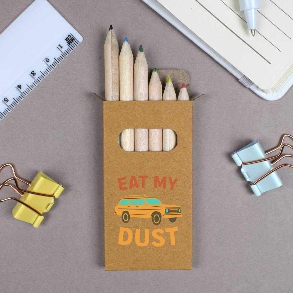 These sets of six mini colouring pencils are ideal for travel or to slip in a bag for those emergency colouring in scenarios that we all face. There are six half size colouring pencils in each box (colours may vary) and the storage box they come in features one of our unique designs.