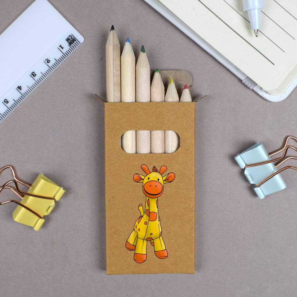 6 x 'Giraffe Teddy' Short 85mm Pencils / Coloured Pencil Set (PE00043676)