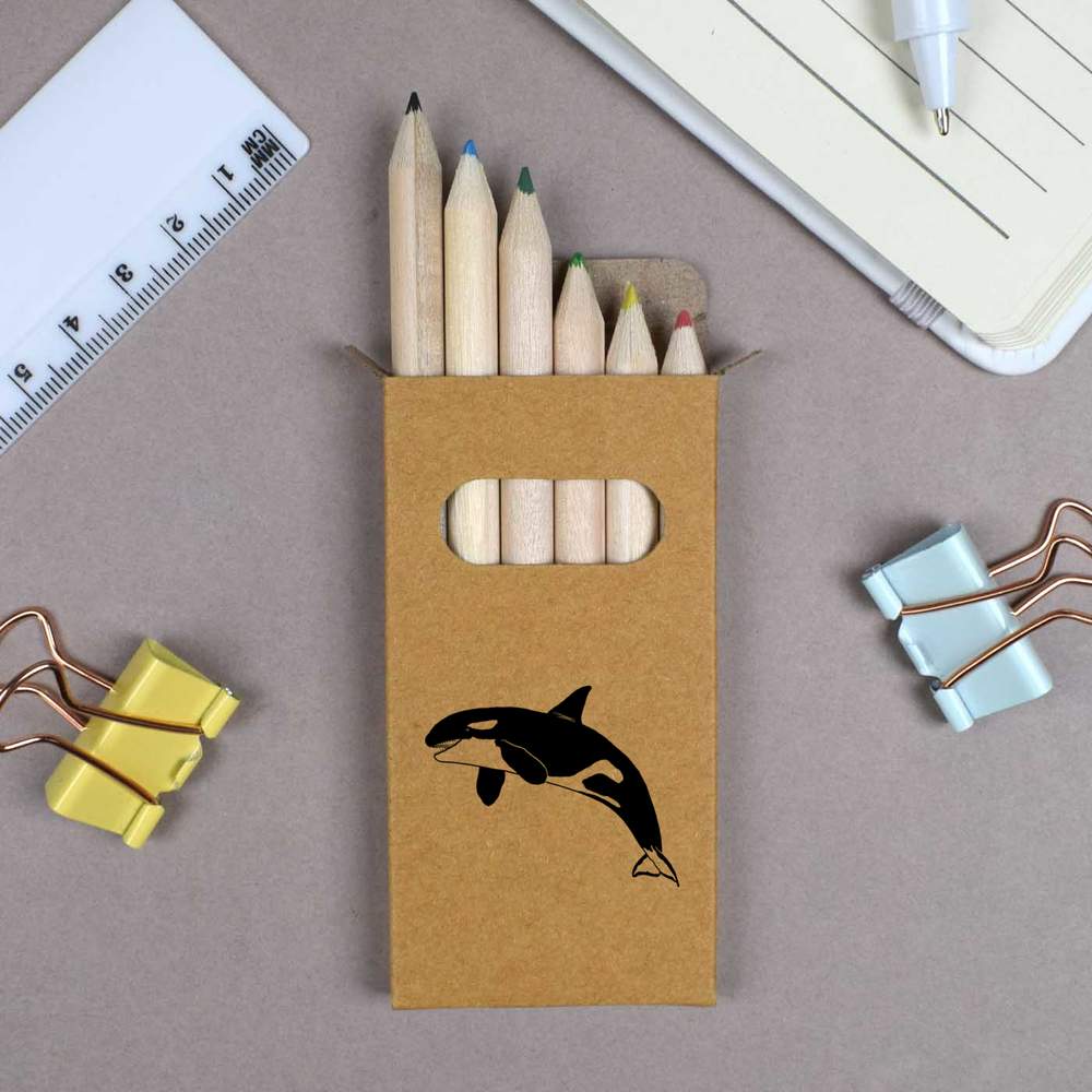 6 x 'Orca' Short 85mm Pencils / Coloured Pencil Set (PE00032893)