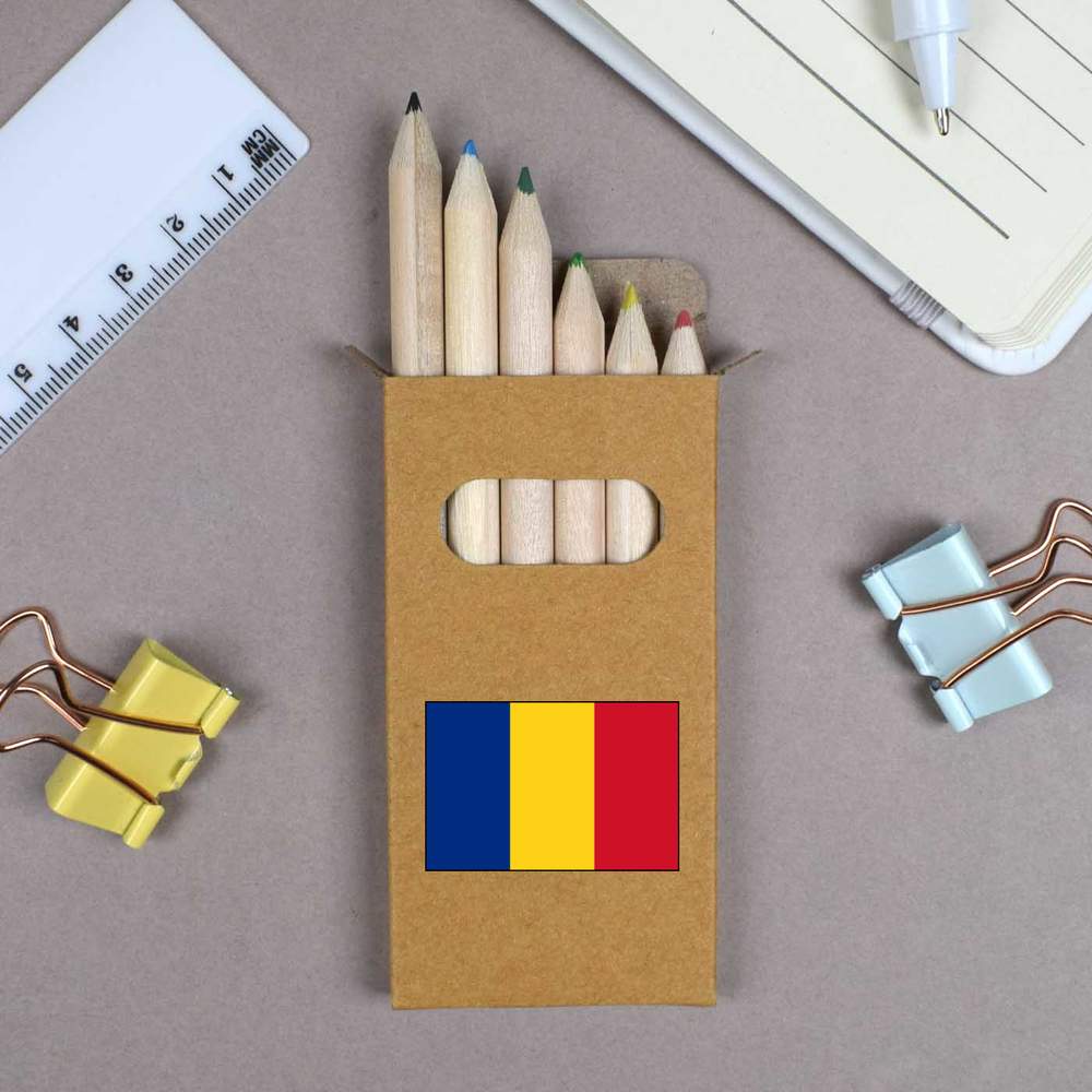 6 x 'Romania Flag' Short 85mm Pencils / Coloured Pencil Set (PE00021633)