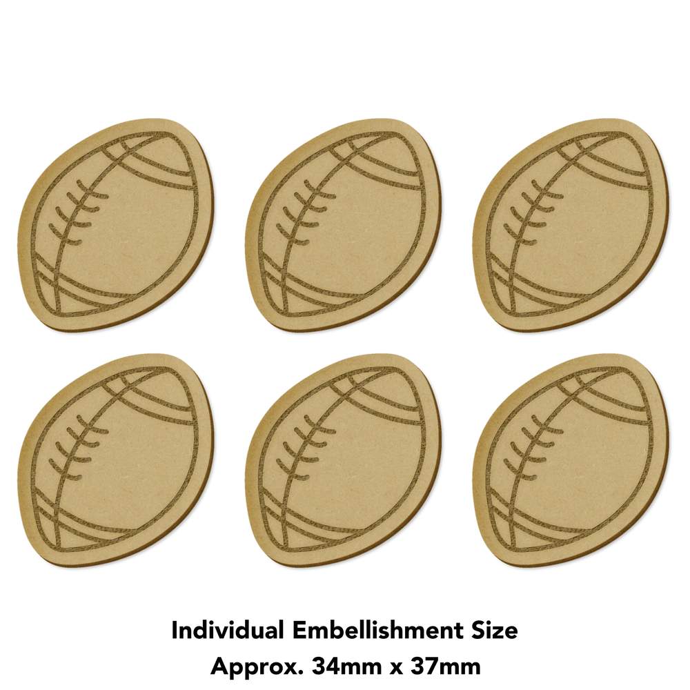 6 x 'Rugby Ball' MDF Craft Embellishments (EB00014974)
