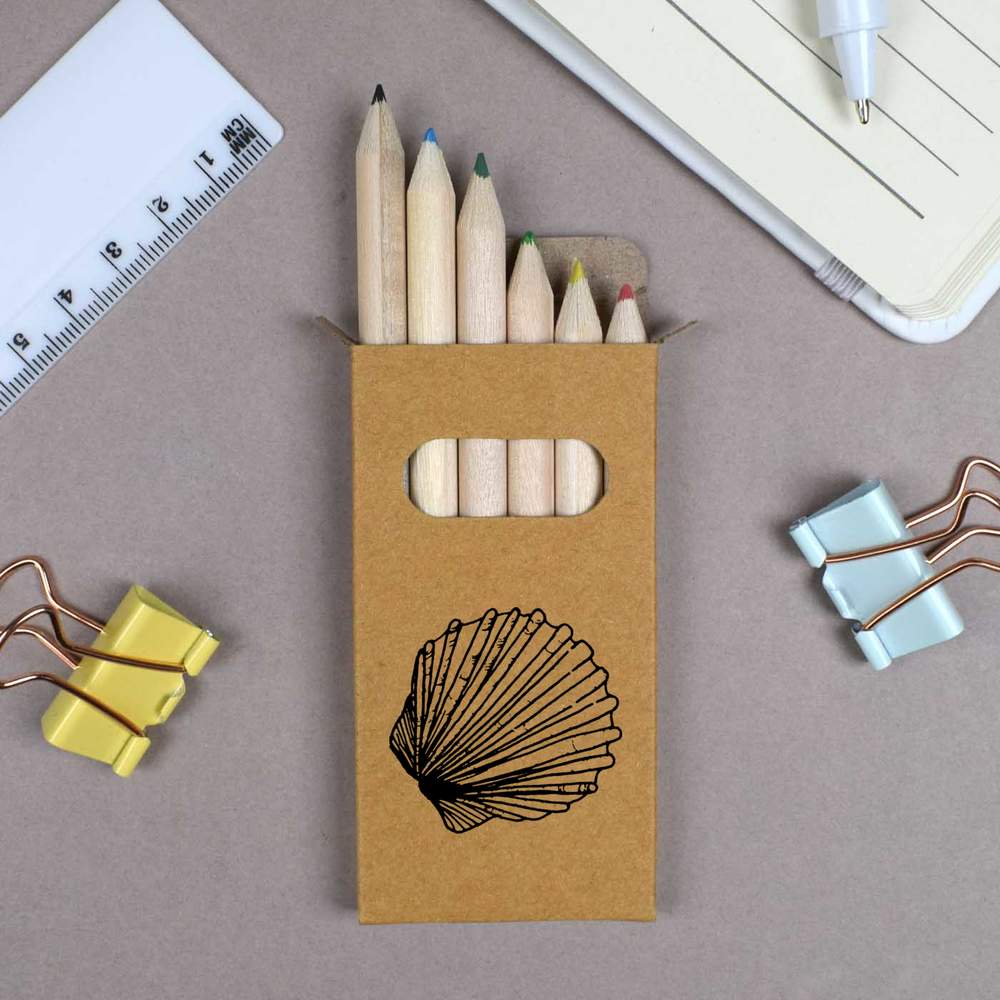 6 x 'Scallop Shell' Short 85mm Pencils / Coloured Pencil Set (PE00010099)
