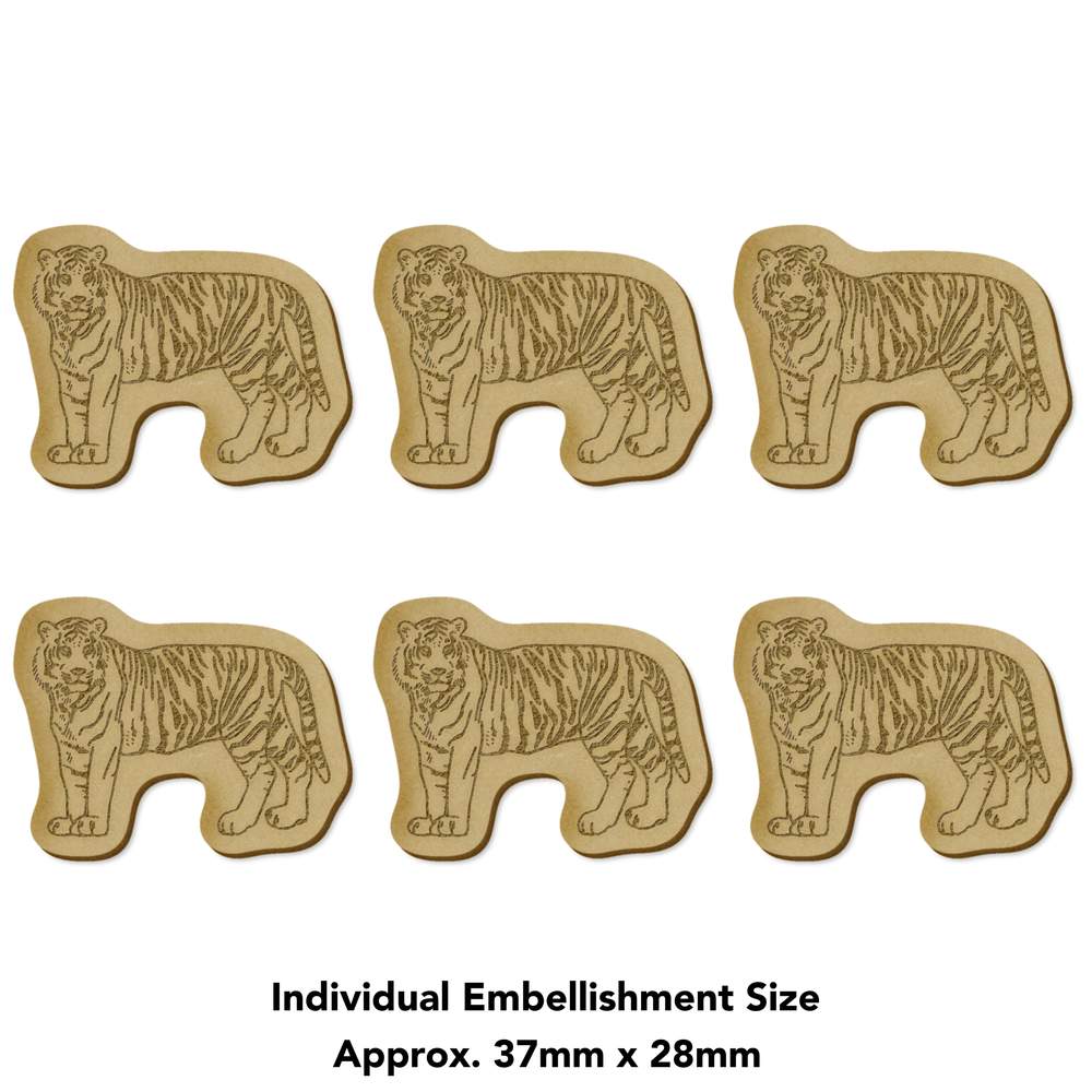 6 x 'Standing Tiger' MDF Craft Embellishments (EB00014403)