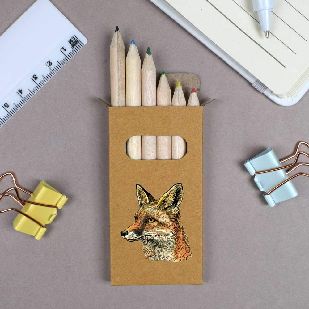 6 x 'Vintage Fox Portrait' Short 85mm Pencils / Coloured Pencil Set (PE00081532)