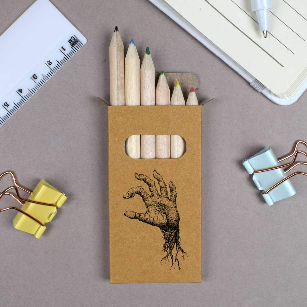 6 x 'Zombie Hand' Short 85mm Pencils / Coloured Pencil Set (PE00076542)