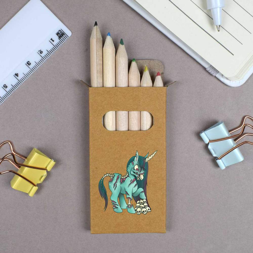 6 x 'Zombie Unicorn' Short 85mm Pencils / Coloured Pencil Set (PE00018311)