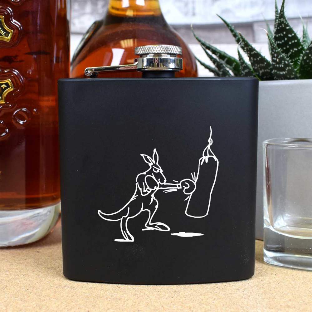 6oz (170ml) 'Boxing Kangaroo' Pocket Hip Flask (HP00023079)