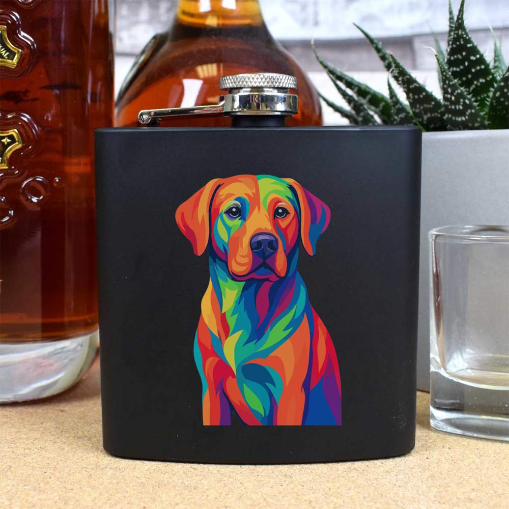 'A vibrant pop art style illustration of a Labrador dog, showcasing its friendly nature with striking colors and bold lines'