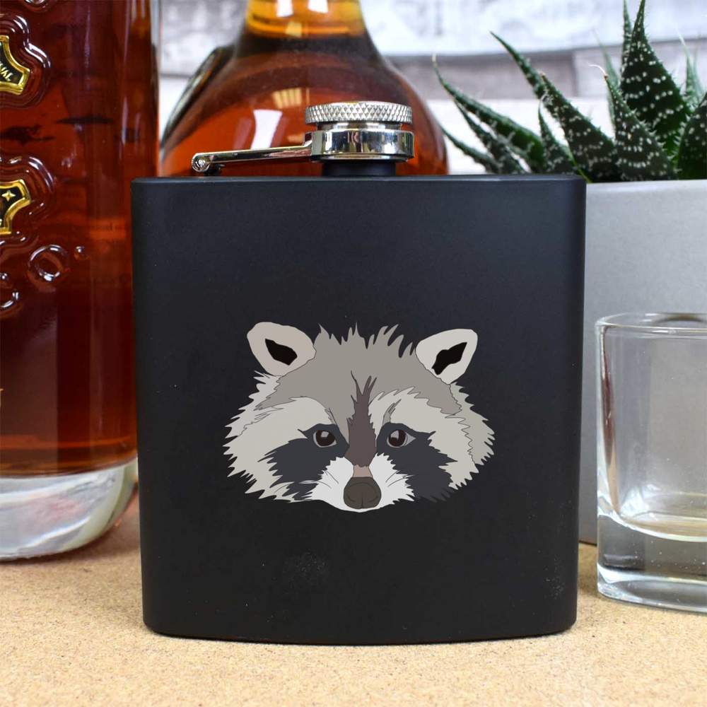 6oz (170ml) 'Racoon Head' Pocket Hip Flask (HP00013642)