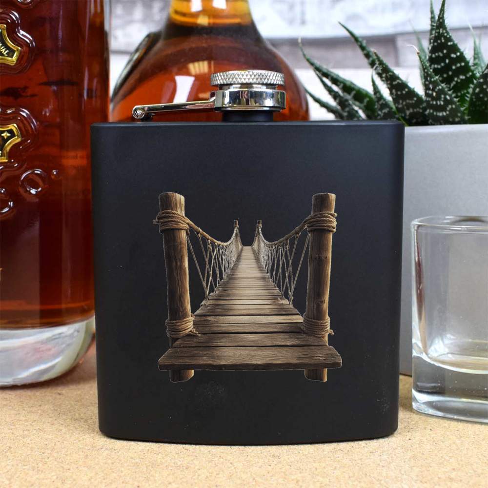 6oz (170ml) 'Wooden Bridge Front View' Pocket Hip Flask (HP00036636)