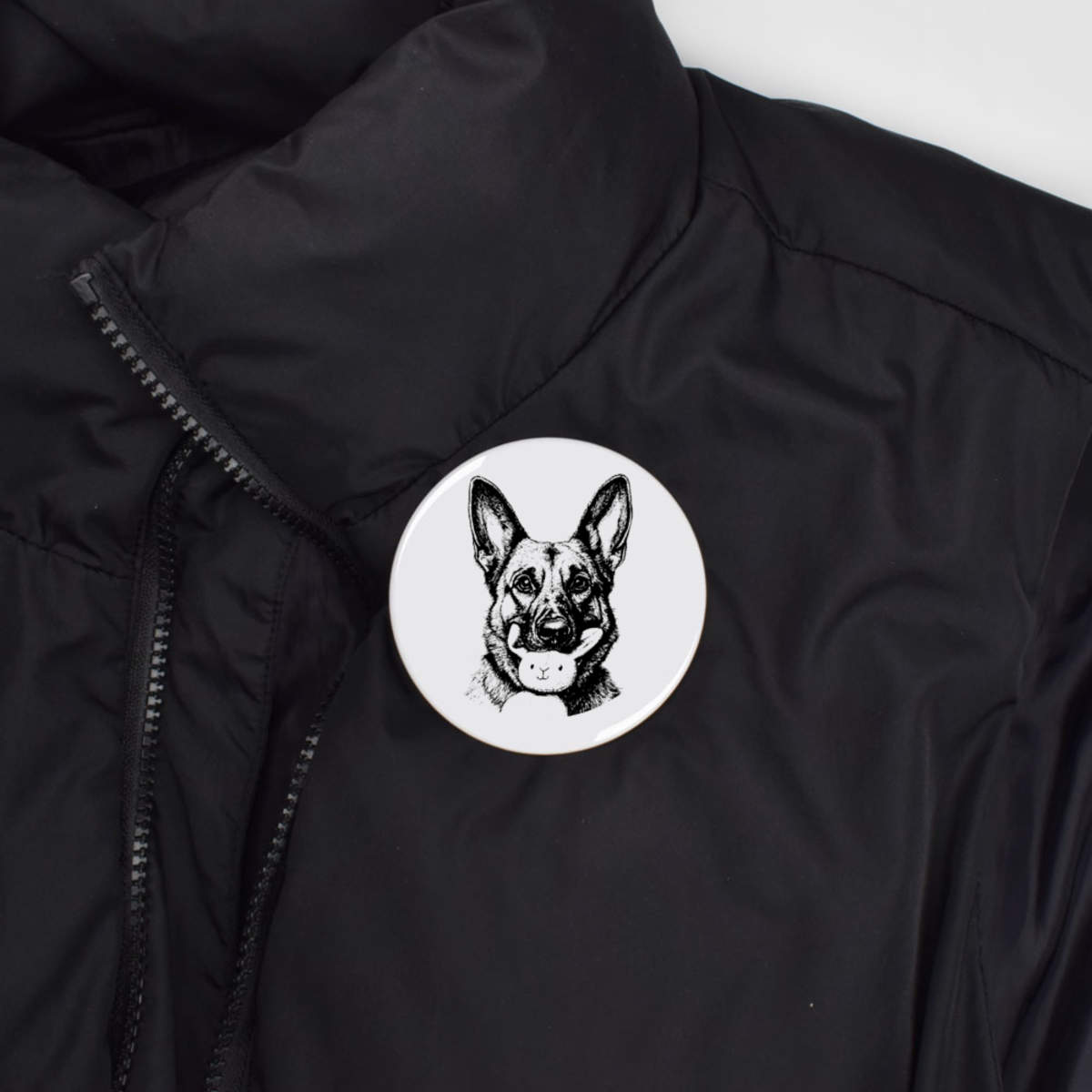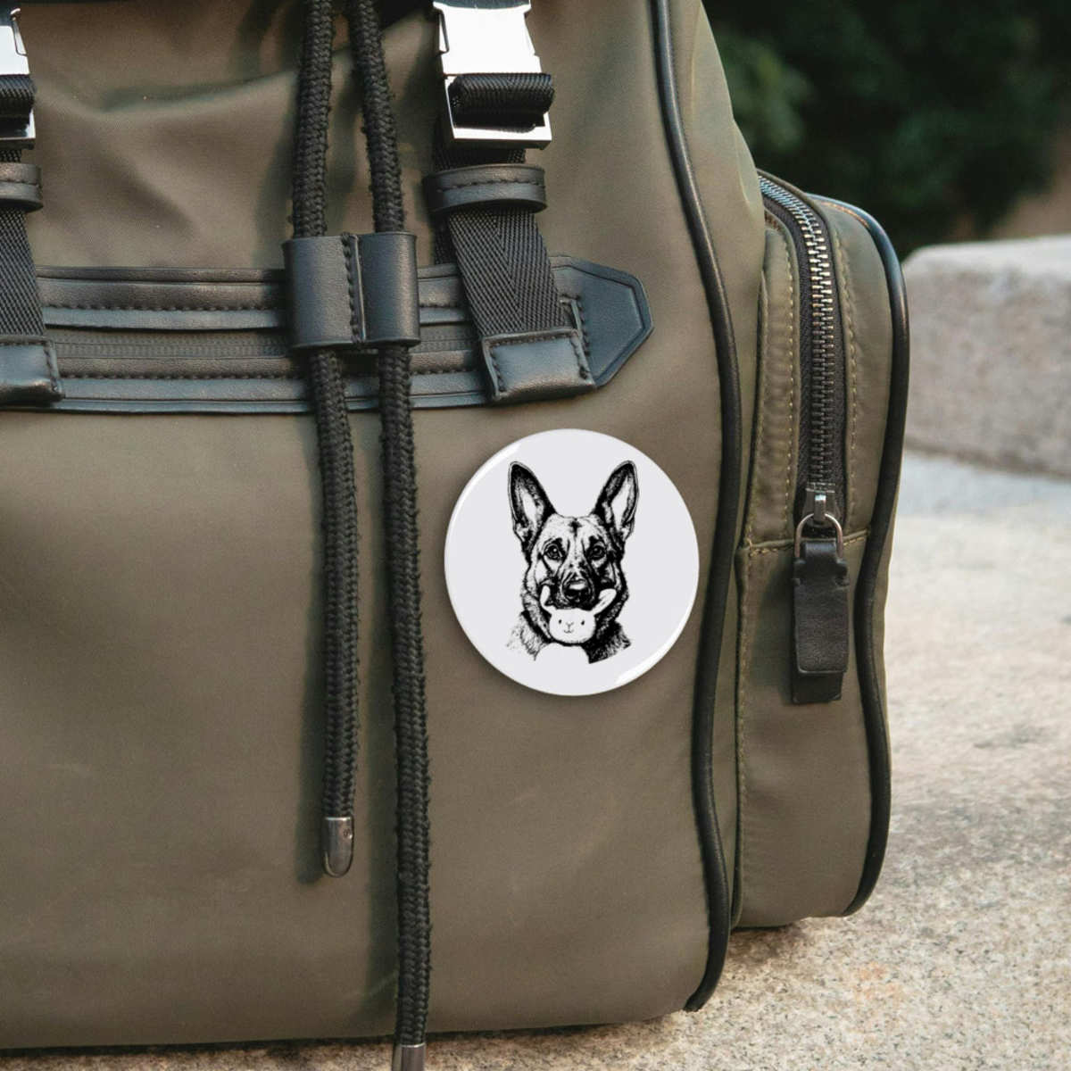 77mm 'German Shepherd with Bunny Toy Portrait' Large Button Pin Badge (BB00140587)