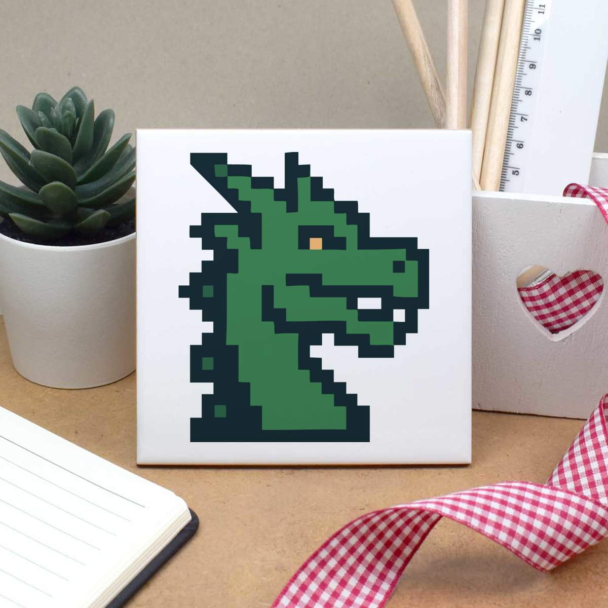 'A cool 8-bit design of a dragon head, perfect for fans of classic video games, fantasy themes, and pixel art'