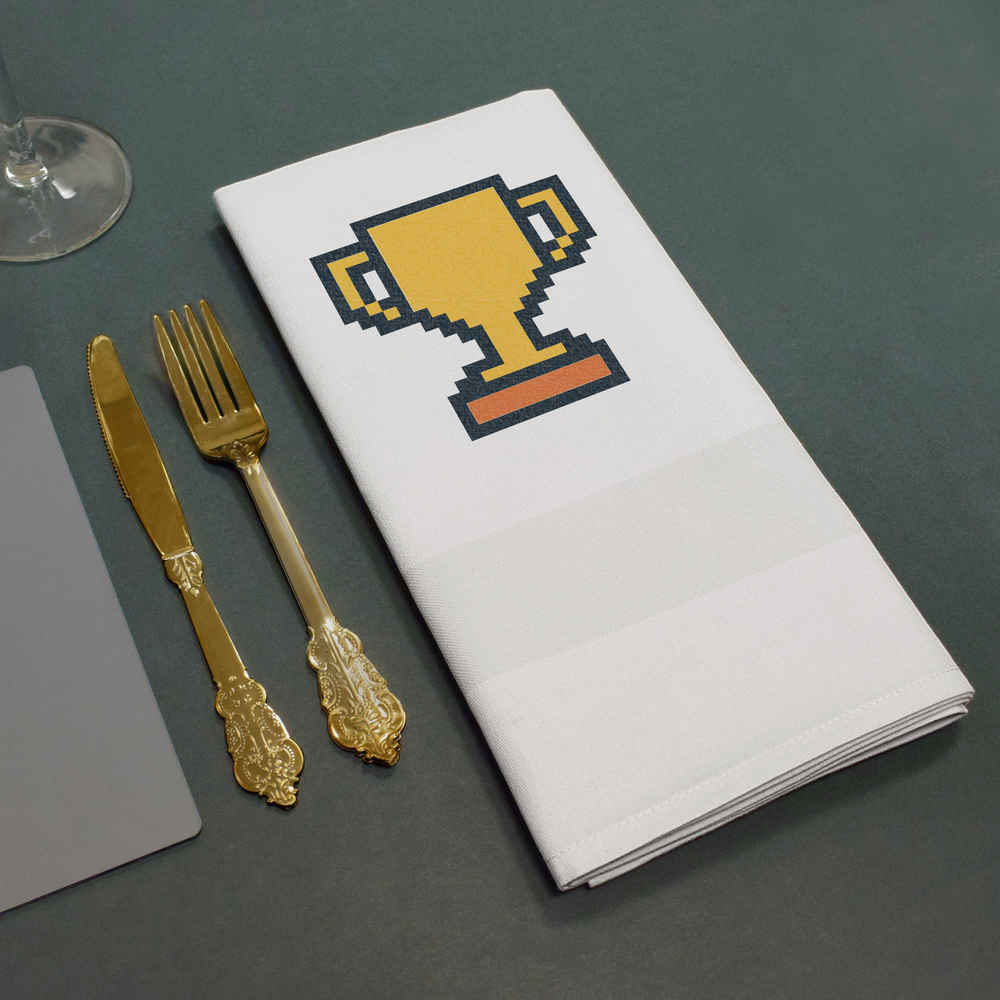 'A cool 8-bit design of a trophy, perfect for fans of classic video games and celebrating achievements'
