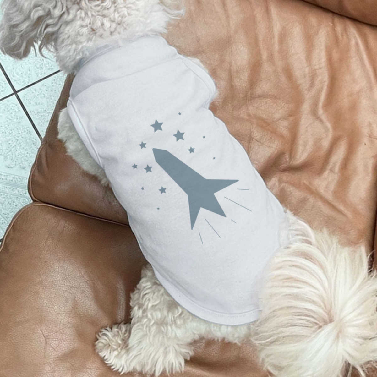 Give your furry friend a fresh new look with this adorable white dog T-shirt, designed to turn heads with its unique print on the back! Made from 100% polyester, it offers a comfortable yet firm stretch, perfect for both playtime adventures and cozy cuddles. Whether your dog loves to play outdoors or cuddle indoors, this T-shirt provides all-day comfort and style.