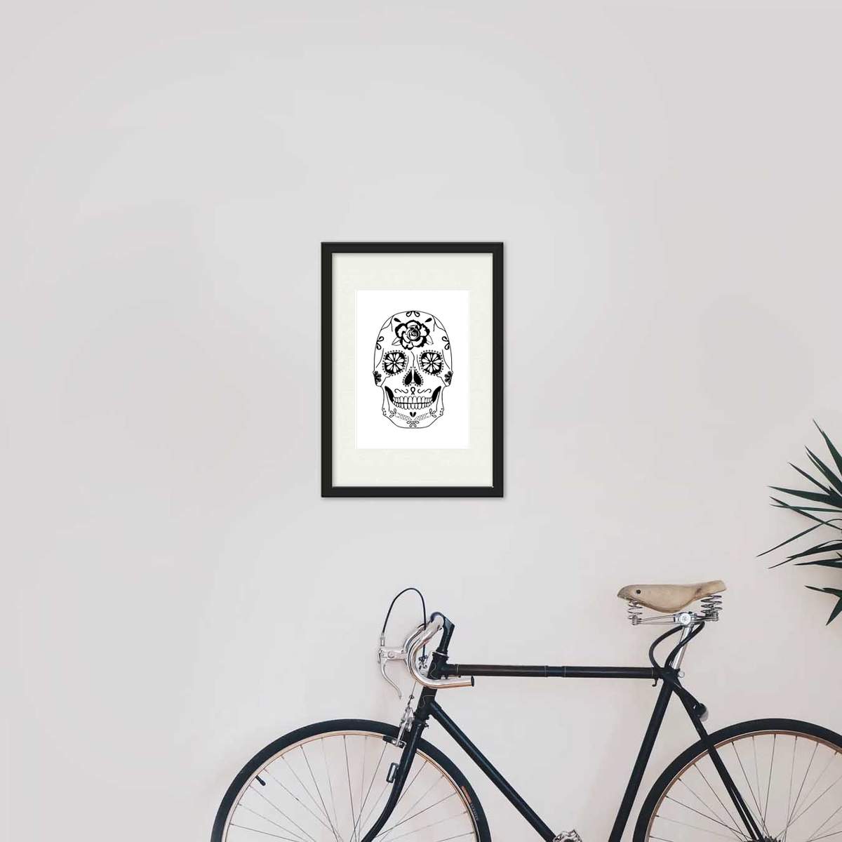 'Day Of The Dead Skull With Flower & Scroll Design'