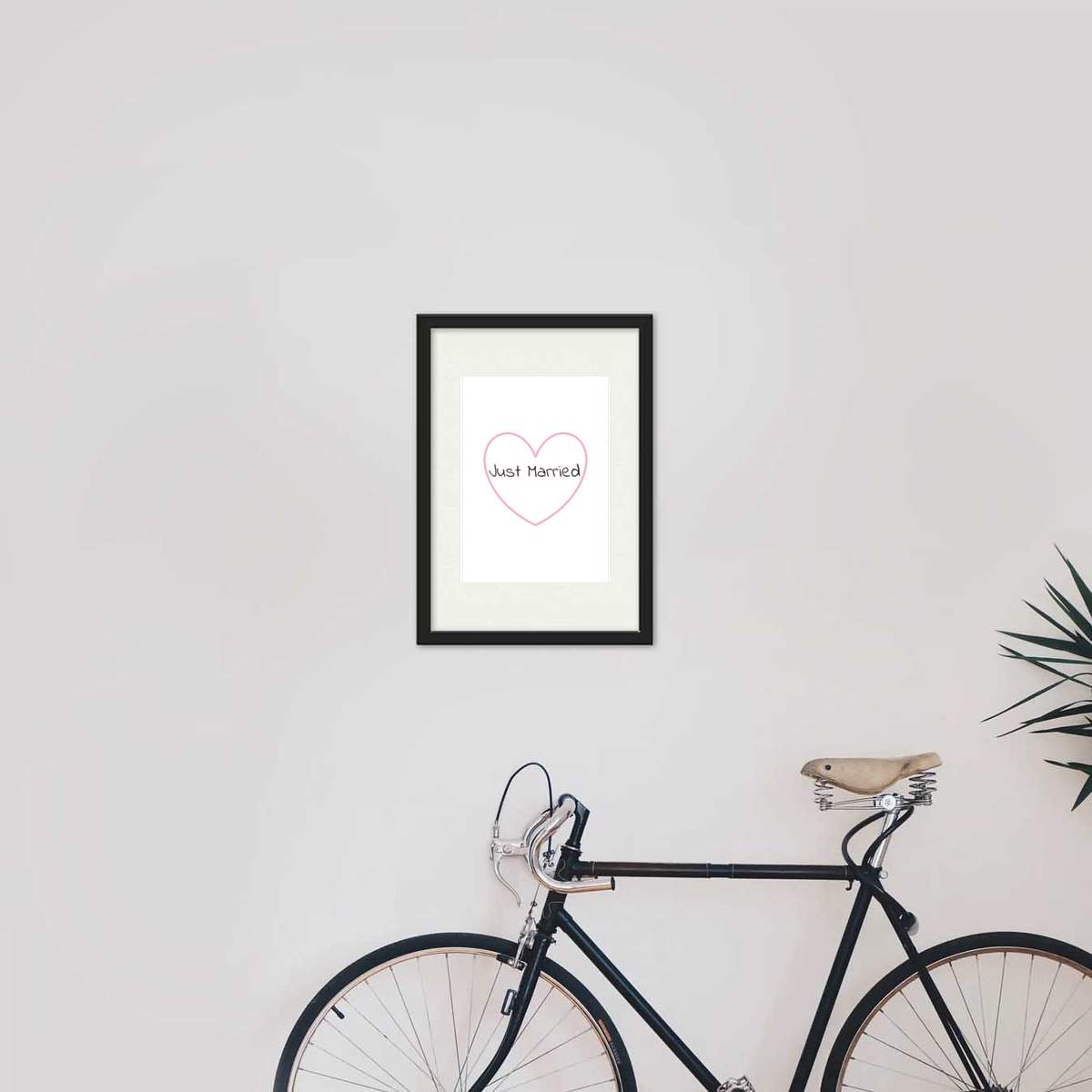 'Just Married Text with Pink Heart'