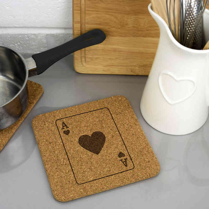 'Ace of Hearts' Square Cork Trivet / Pot Stand (TR00029820)