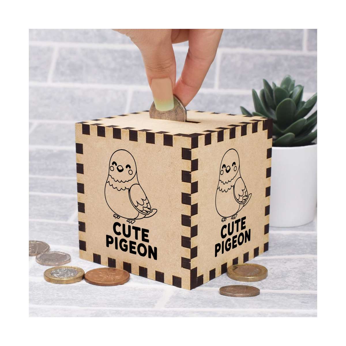 An 8.5cm wooden money box made out of the finest quality MDF and printed on all four sides with a unique design. The bottom is flat and the top has a slot for coins, the box itself is 85mm on each side, with a 35mm x 5mm coin slot, so please be sure it's suitable for you.