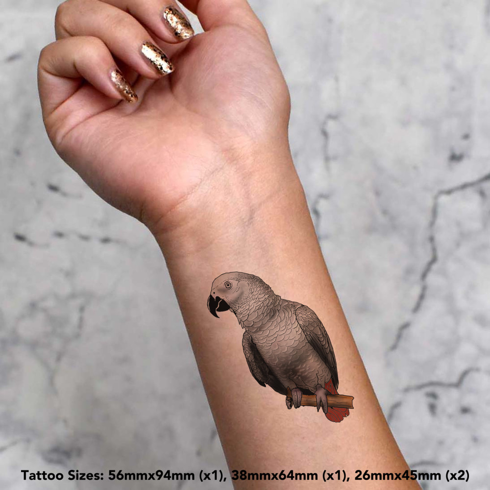 'African Grey Parrot' Temporary Tattoos - Water Resistant, Skin-Safe, Non-Toxic Transfers (TO028573)