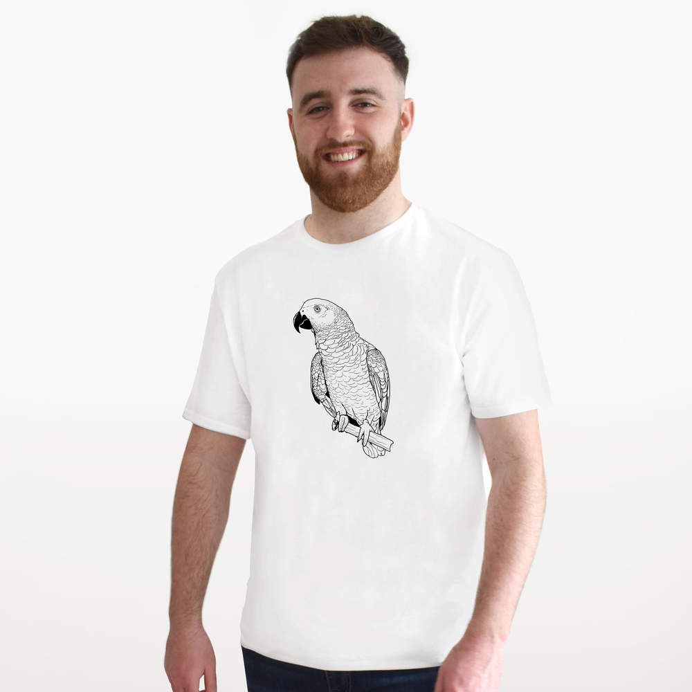 'African Grey Parrot' Unisex T-Shirt - 100 % Cotton, White, S (TA00073177)