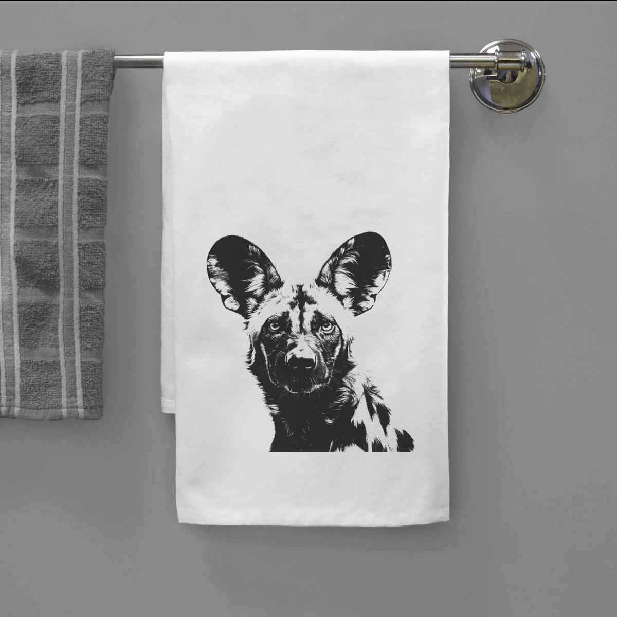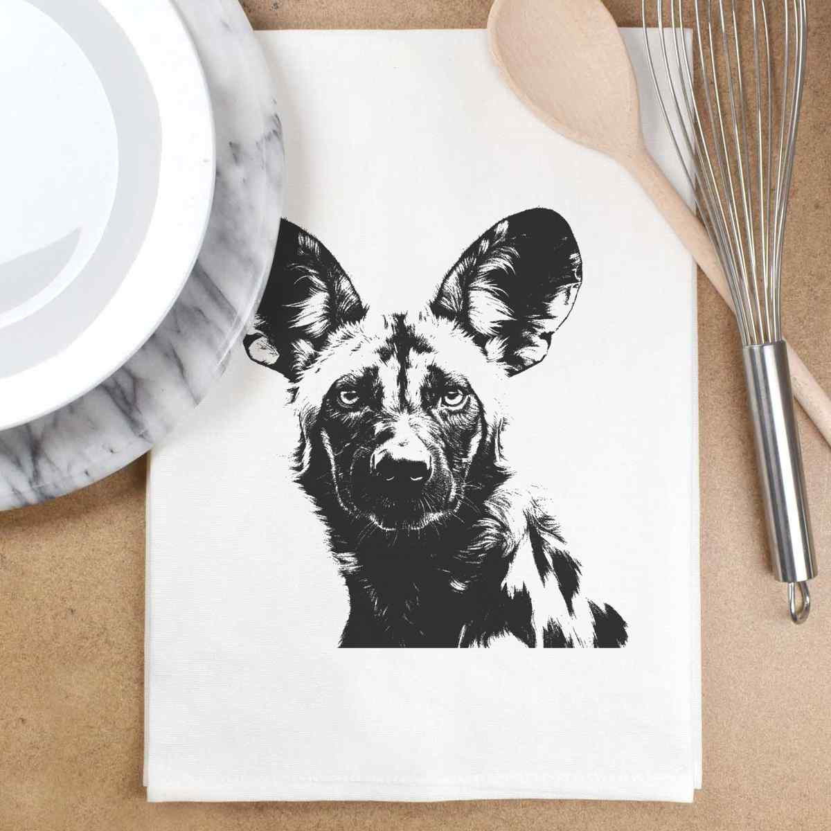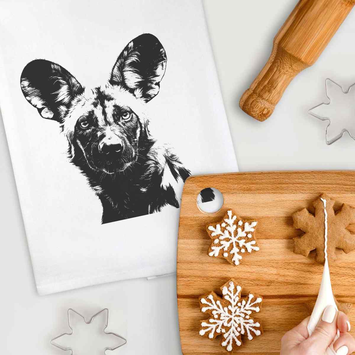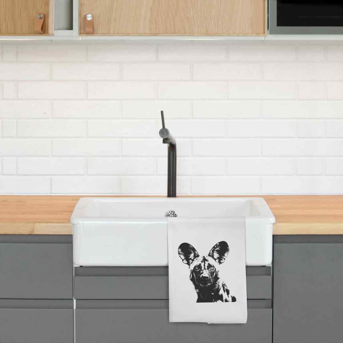'African Wild dog' White Cotton Tea Towel / Dish Cloth (TW00032974)