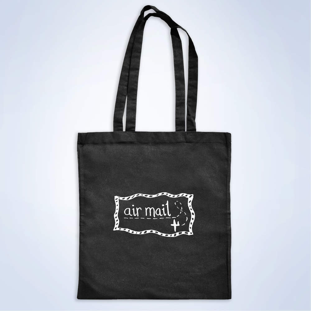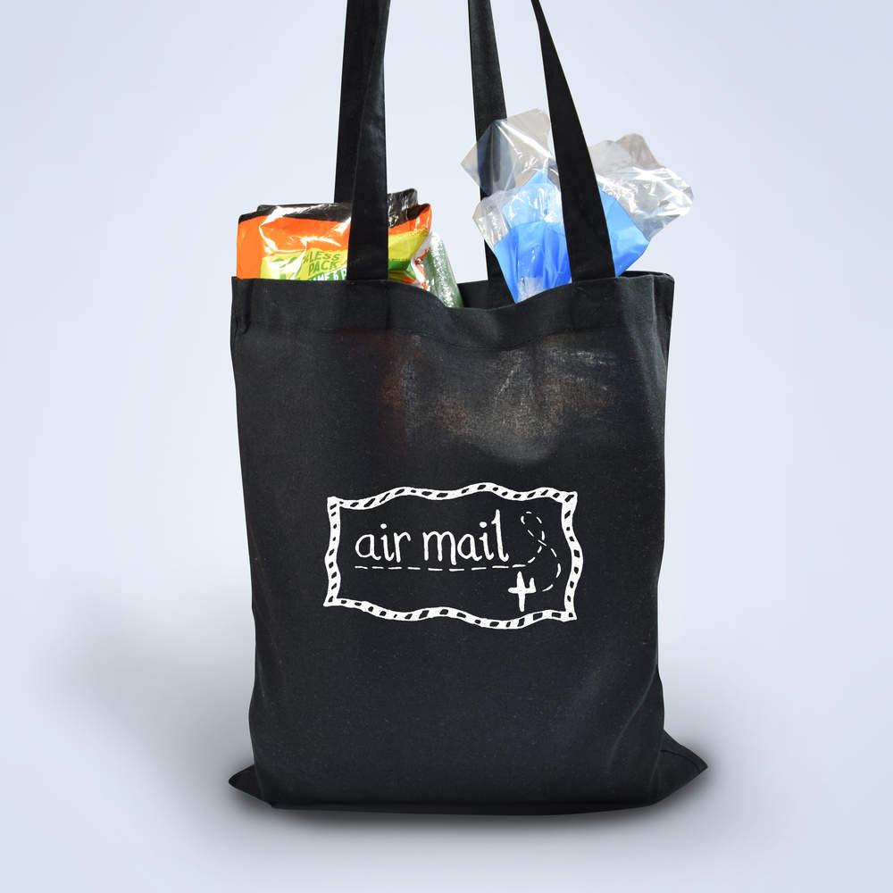 'Air Mail' Classic Black Tote Shopper Bag (ZB00001185)
