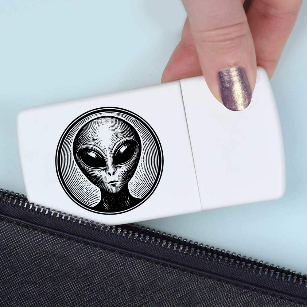 'A Circular portrait image of an extraterrestrial alien'